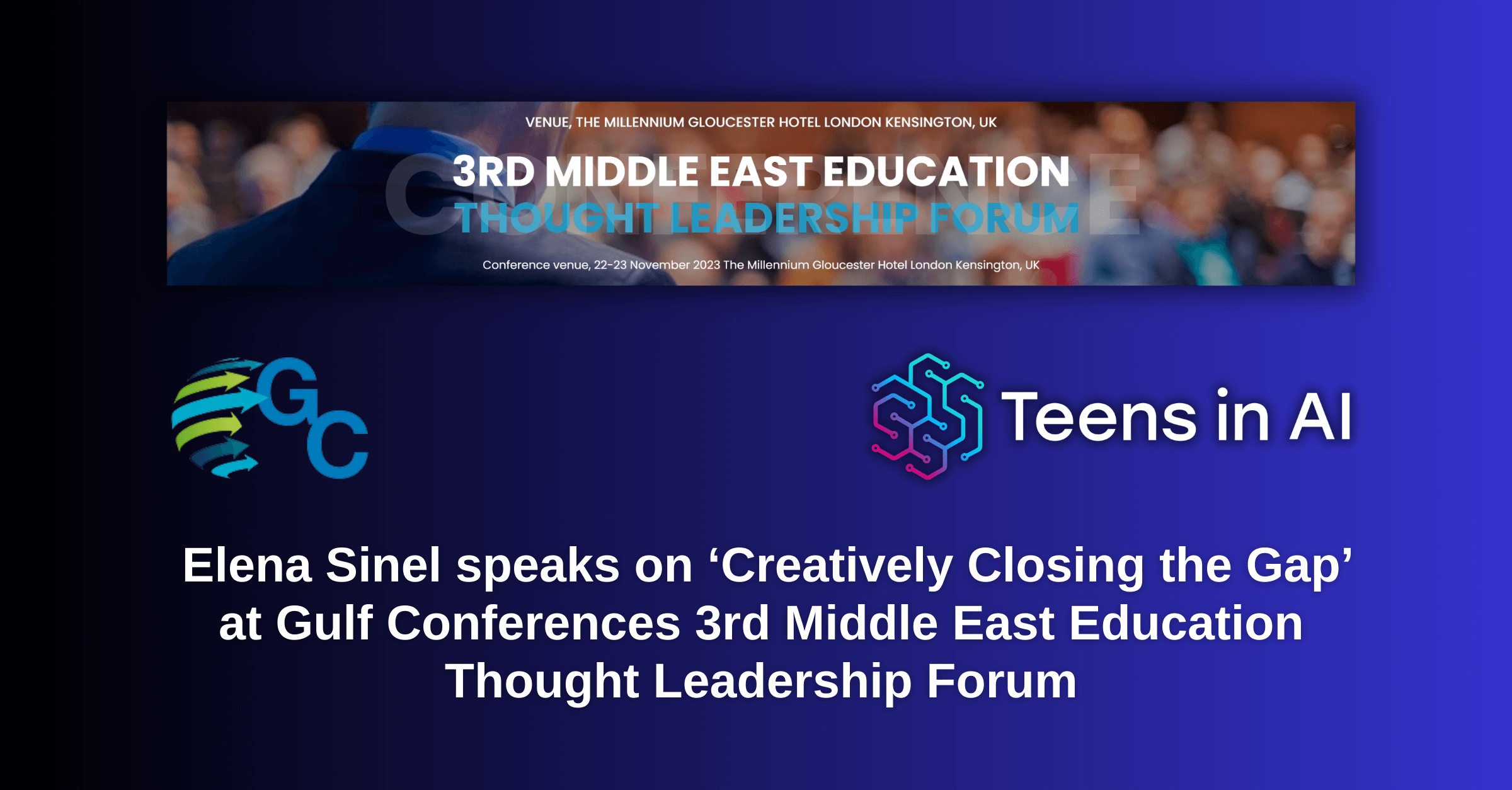 Elena Sinel FRSA, Founder and CEO of Teens in AI, is a key speaker at the Gulf Conferences 3rd Middle East Education Thought Leadership Forum in London. Join the discussion on ‘Creatively Closing the Gap’ on 23 November 2023, at 09:30 GMT.